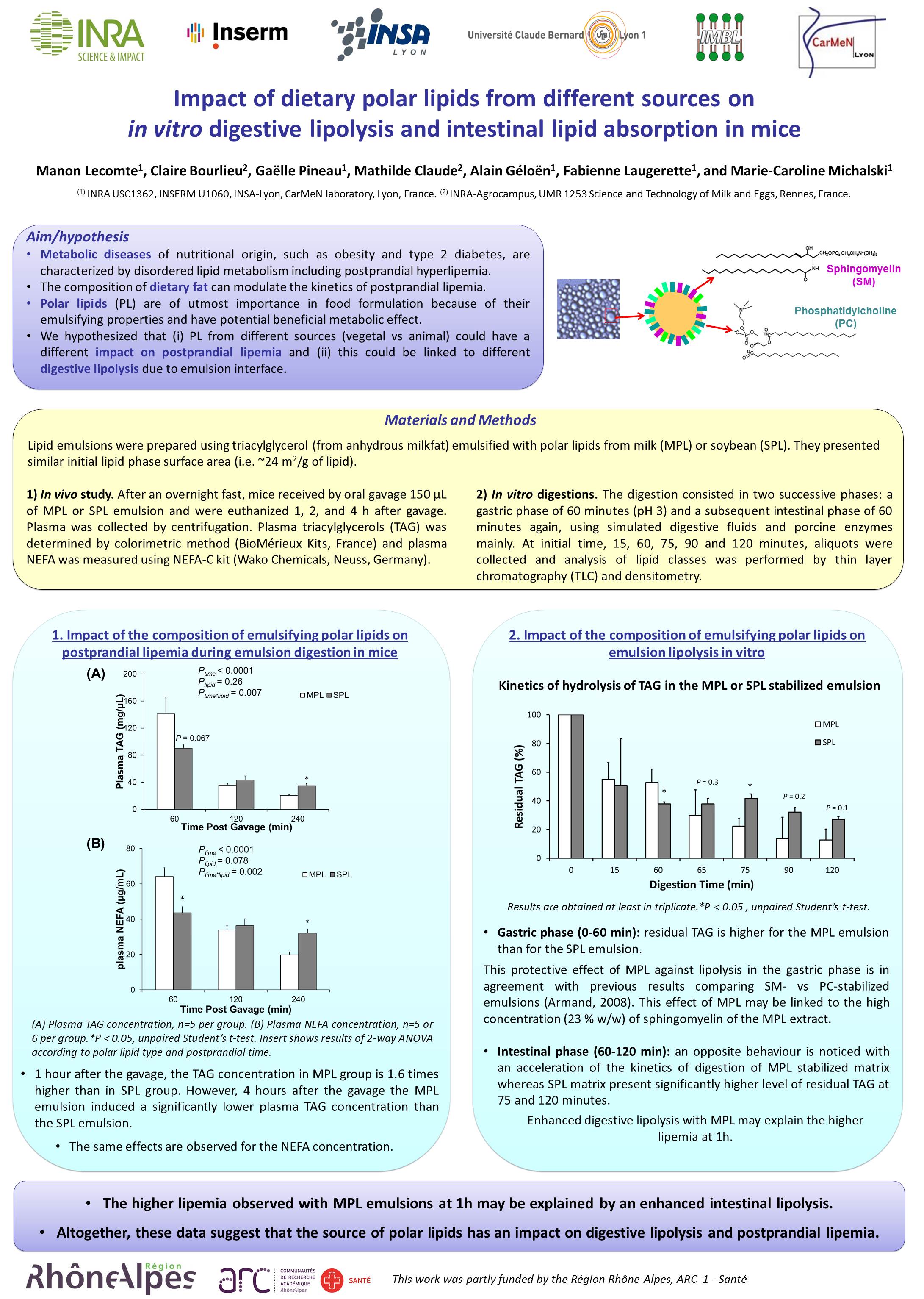 Discussion – Ces premiers résultats suggèrent que la qualité des lipides polaires influence la lipolyse digestive et le métabolisme postprandial des lipides.