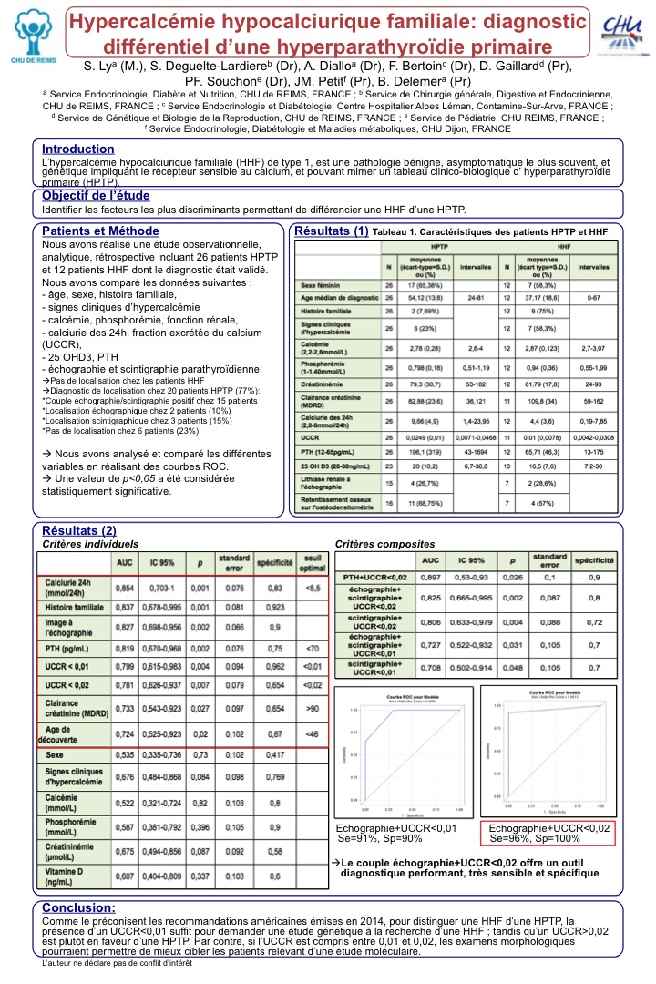 Pour distinguer une HHF d’une HPTP, la présence d’un UCCR<0,01 suffit pour demander uneétude génétique ; Par contre, si l’UCCR est compris entre 0,01 et 0,02, les examens morphologiques pourraient permettre de mieux cibler les patients relevant d’uneétude moléculaire.