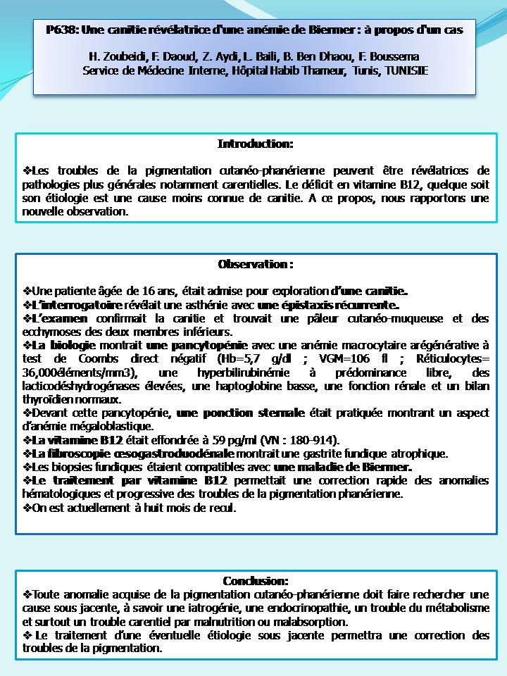 H. Zoubeidi*a (Dr), F. Daouda (Dr), Z. Aydia (Dr), L. Bailia (Dr), B. Ben Dhaoua (Dr), F. Boussemaa (Dr)