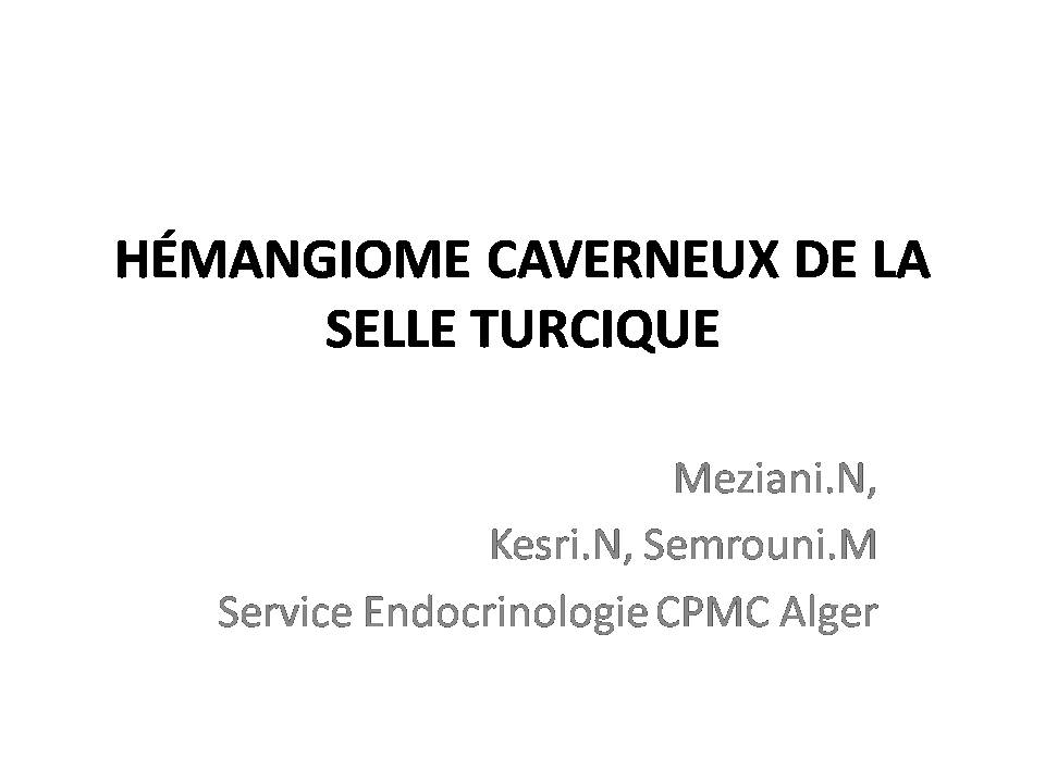 Les données biologiques et radiologiques étaient en faveur d’un adénome hypophysaire non sécrétant envahissant le sinus caverneux. La chirurgie a consisté en évidement satisfaisant sans complication post opératoire. L’étude histologique a révélé un hémangiome.
