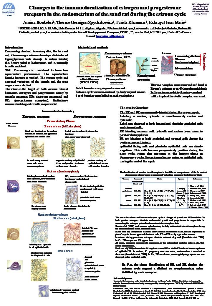 a USTHB-FSB-BPO-LRZA El Alia BP 32, Bab-Ezzouar Alger, Alger ; b USTHB-FSB-BPO-LRZA El Alia BP 32, Bab-Ezzouar, Akger ; c Université de Lyon, Laboratoire de Biologie Générale et Université Catholique de Lyon, Laboratoire de Reproduction et Développement Comparé, LyonEPHE., 25, rue du Plat, 69 288 Lyon, Cedex 02 - FRANCE