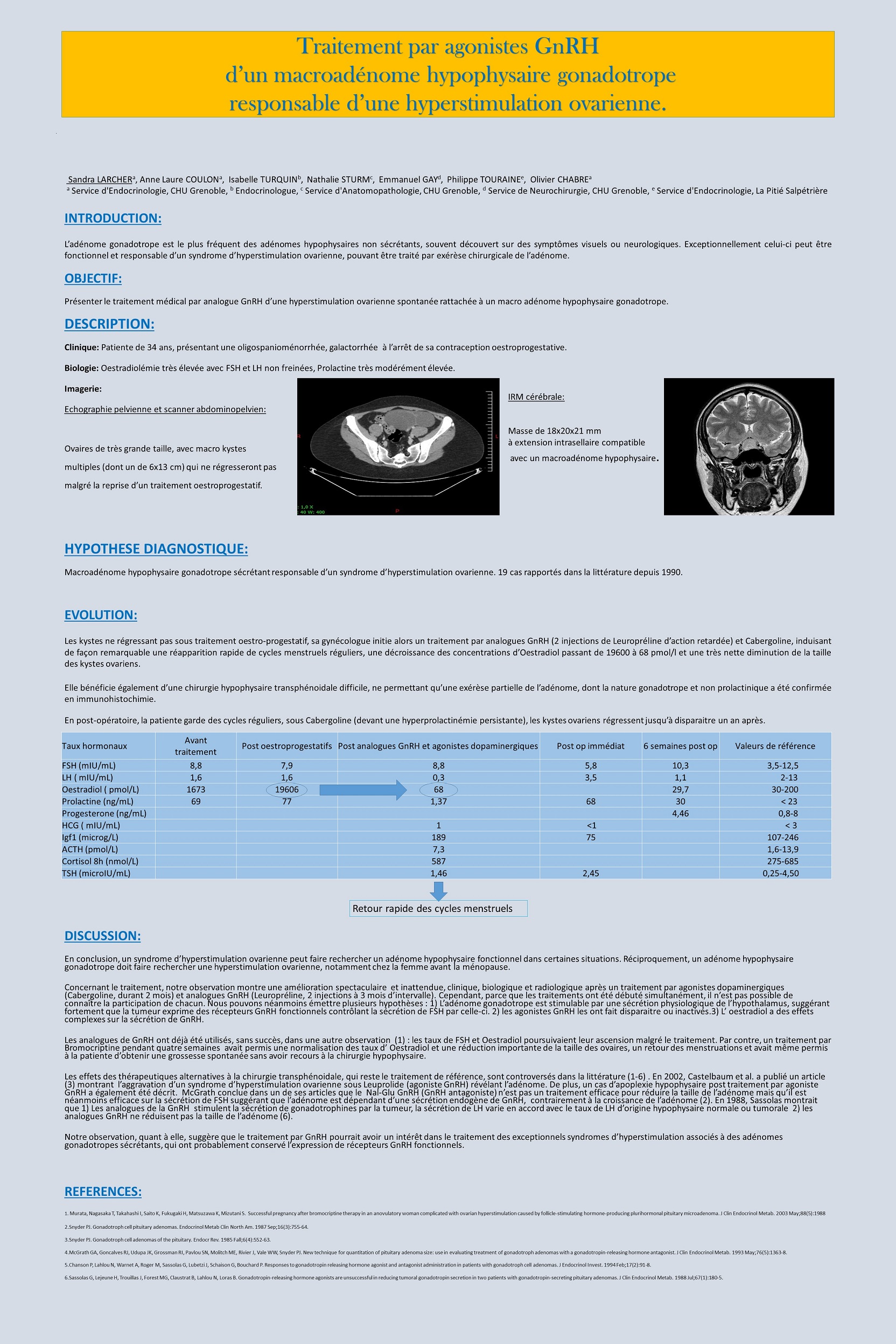 Traitement par agoniste GnRH d’un macroadénome hypophysaire gonadotrope responsable d’un syndrome d’hyperstimulation ovarienne.
