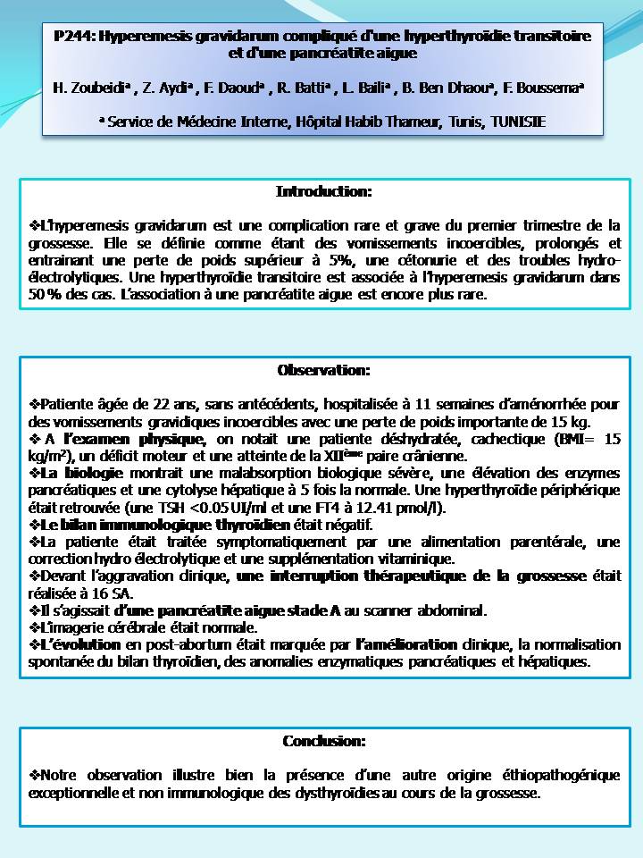 H. Zoubeidi*a (Dr), Z. Aydia (Dr), F. Daouda (Dr), R. Battia (Dr), L. Bailia (Dr), B. Ben Dhaoua (Dr), F. Boussemaa (Dr)
