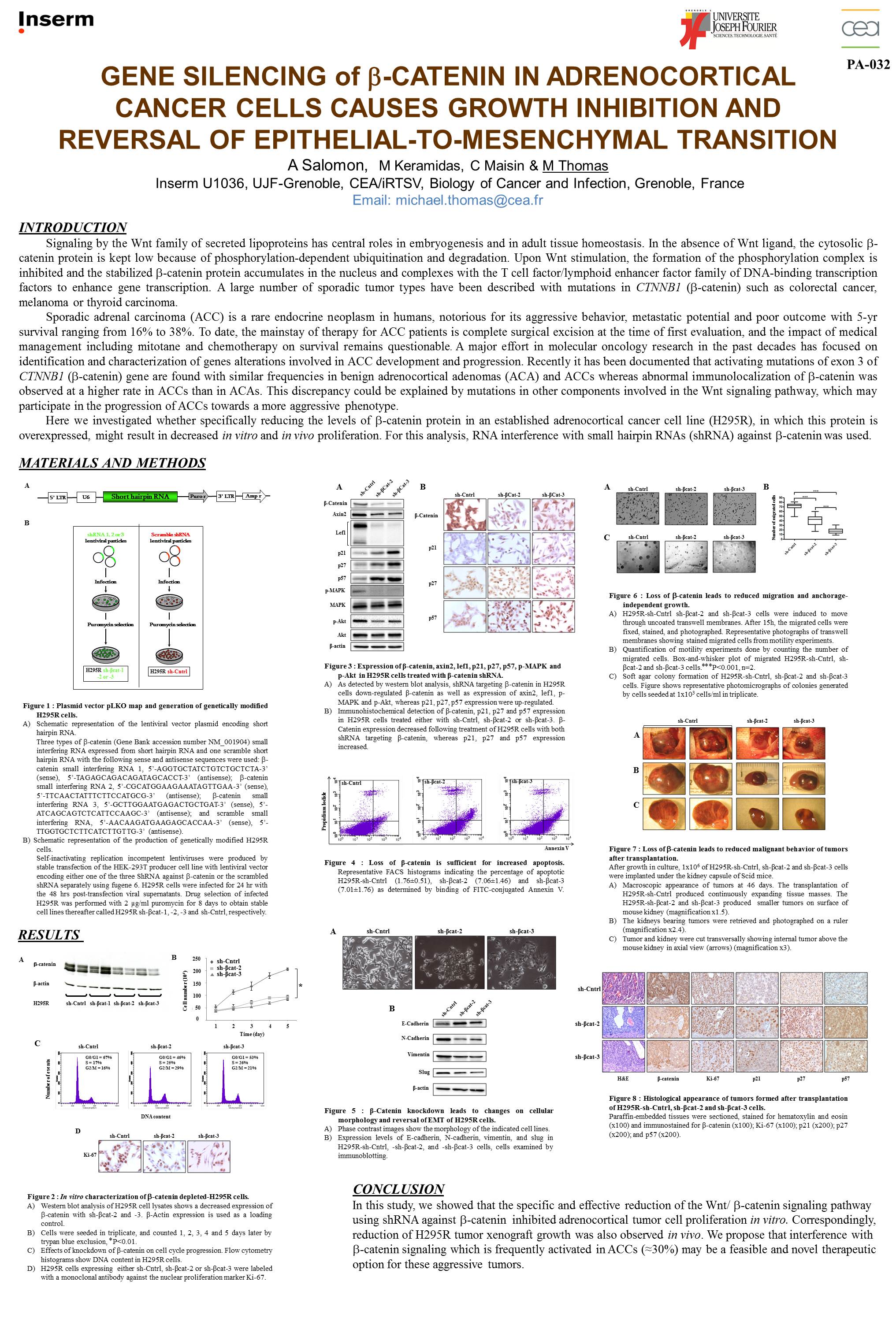 Gene silencing of beta-catenin in adrenocortical cancer cells causes growth inhibition and reversal of epithelial-to-mesenchymal transition.