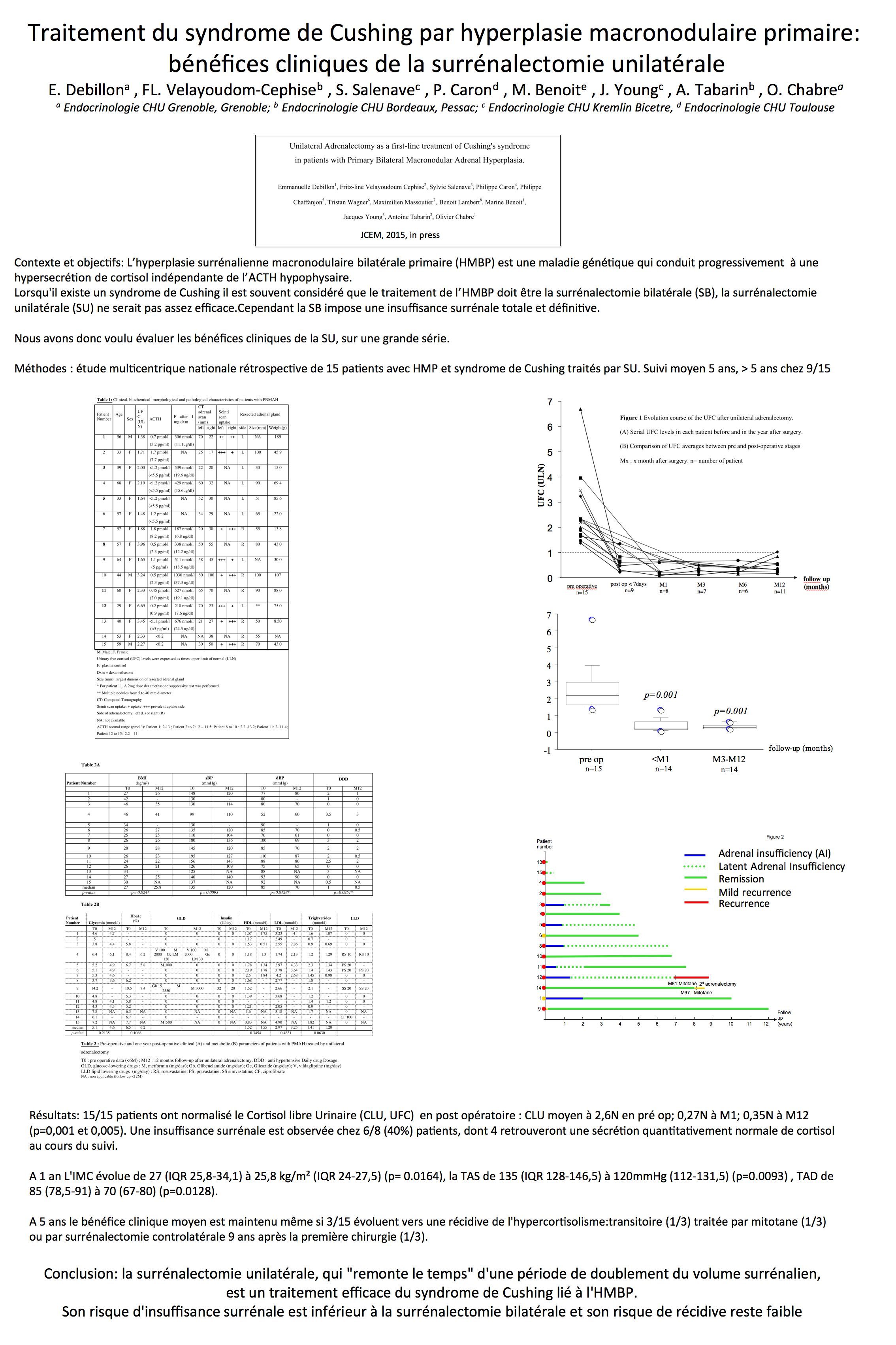 Méthodes : étude multicentrique nationale rétrospective de 15 patients avec HMP et syndrome de Cushing traités par SU. Suivi moyen 5 ans, > 5 ans chez 9/15