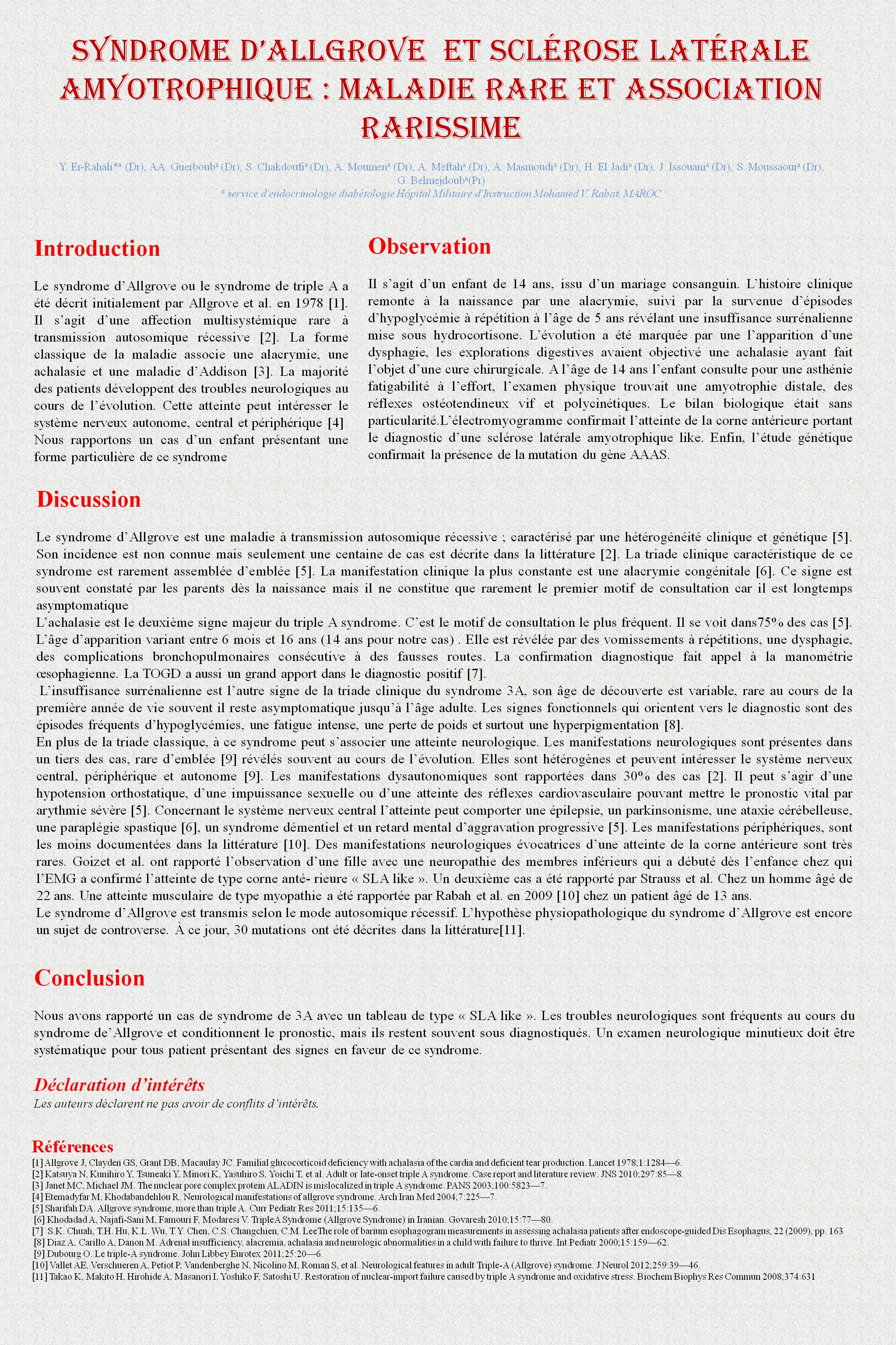 Syndrome d’Allgrove et Sclérose latérale amyotrophique : maladie rare et association rarissime